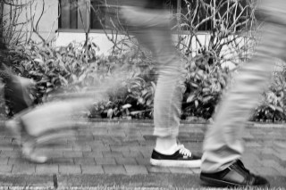 The second form of motion photo was blurred motion. This involves a longer shutter speed and a steady hand so that you can get a nice crisp background with blurry subjects rushing about in the frame. Of course, the best time to do these shots on campus is during the ten minutes in between class periods when the whole campus is flooded with students hurrying to and from class. Most of my classmates had the same idea. In fact, there was one afternoon where at least four of us were all lined up along the same path, swapping tips back and forth and waiting for the rush to start.