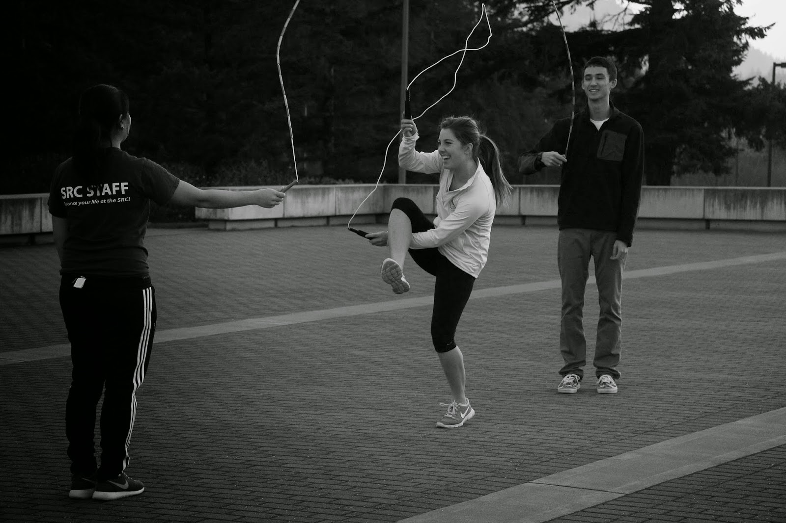 There was a large group of people all doing different forms of jump rope outside of the rec center and they made quite a sight. So much of a sight that I met two other photographers from my class there, one was leaving just as I arrived and the other came just as I was leaving.