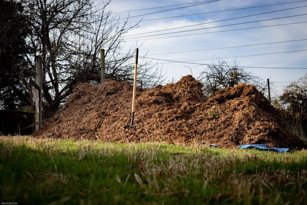 Did you know you can chase the guys in the orange trucks that shred trees down the street and ask them to give you the wood chips? I didn’t either – until my mom did it.